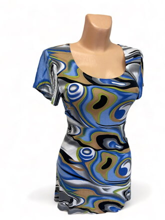 Halenka s různou délkou rukávů, polyesterový úplet. Délka 65cm, velikost 44 nelze ušít jinak.