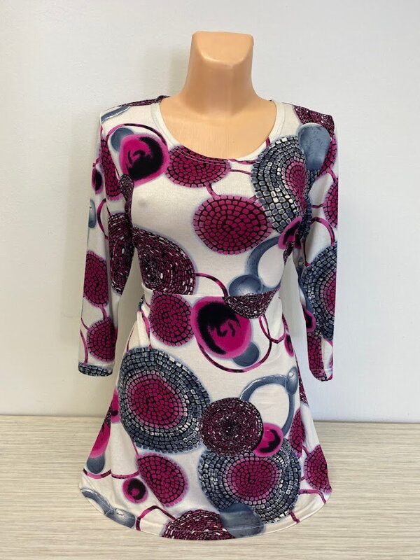 Nádherná halenka s cyklámenovým vzorem, střih a délka na přání, viskózový úplet.